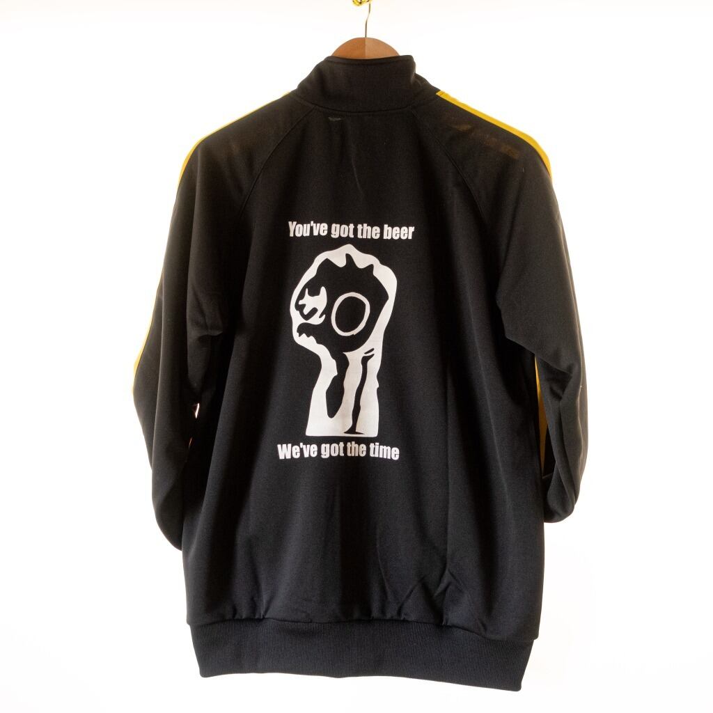 部屋住みからジョギング、お掃除やちょっと一杯飲みに行くときに大変便利なトラックジャケットでございます。
