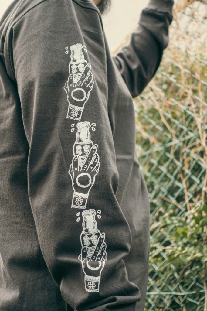 両袖にはBREAK EDGE HANDをプリント。オプションでXXLも対応す。