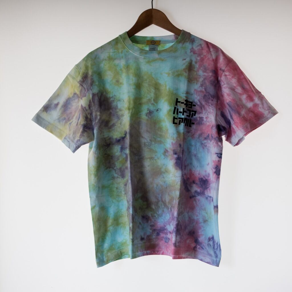 お馴染みのカタカナロゴTシャツを1枚1枚手で染めておりまっす。