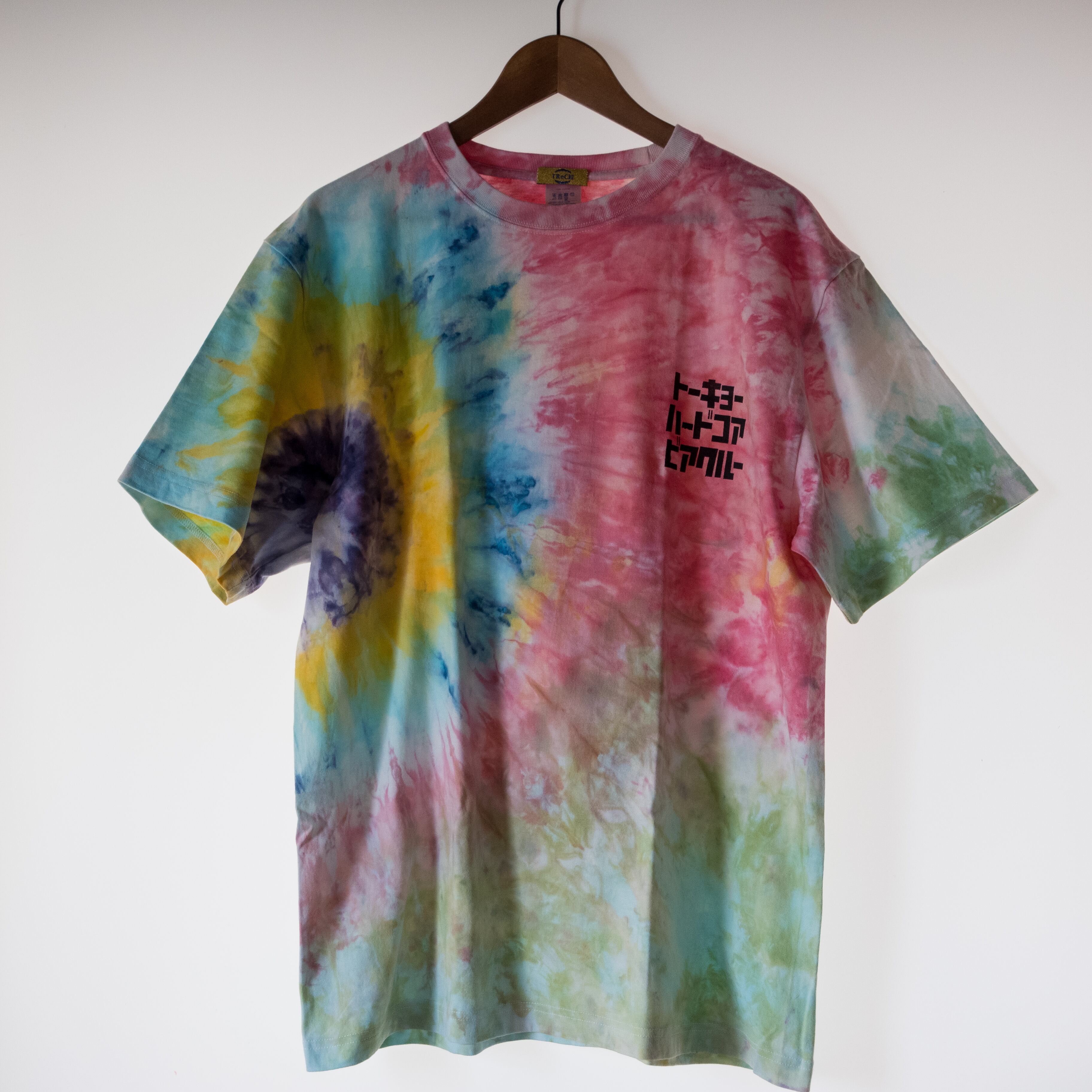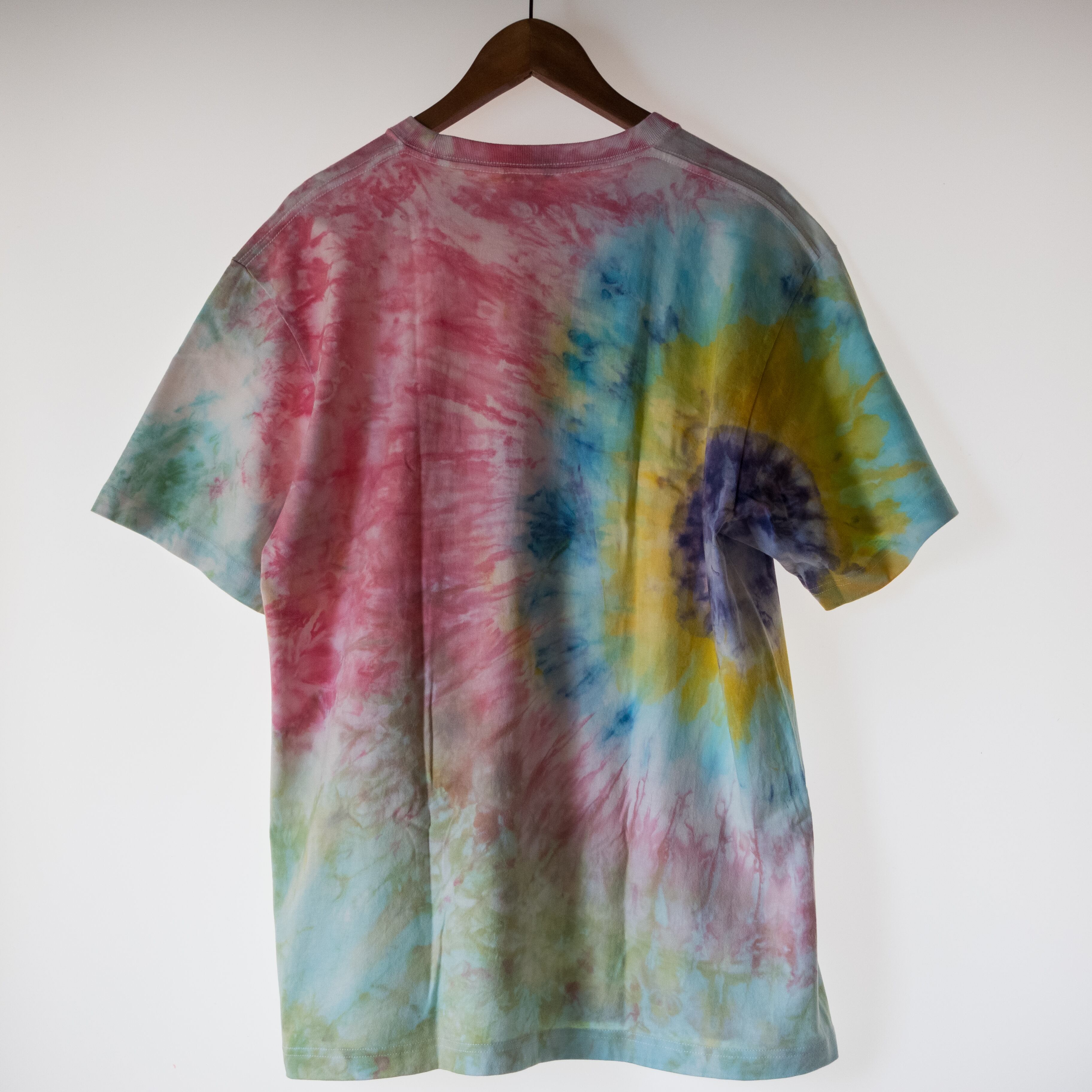 絞り、垂らし、アイスダイと染め方は毎回変えてる1点ものシリーズ。価格は作業工程により変えてます。また、染める工程でシャツの縮み具合が異なりますので実寸を確認ください。