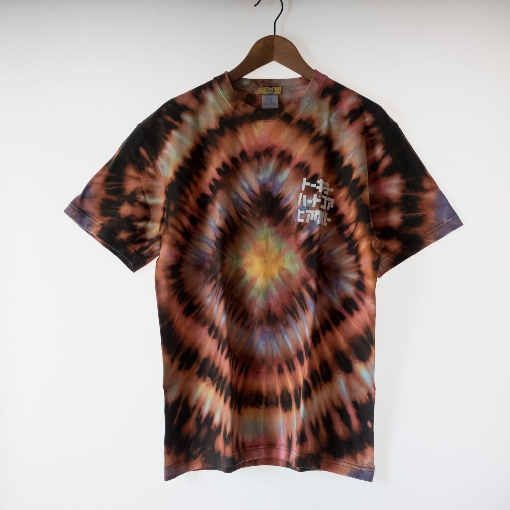 お馴染みのカタカナロゴTシャツを1枚1枚手で染めておりまっす。ブラックシリーズはブリーチからの染をしています。